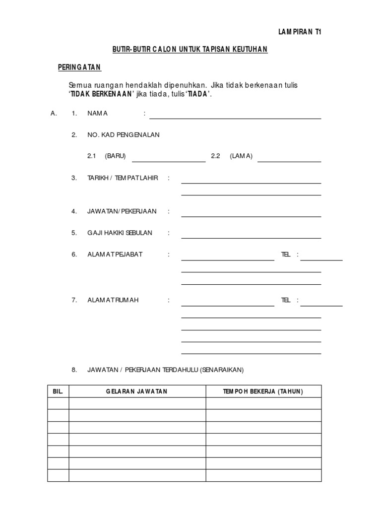 Lampiran T1 Butir Butir Calon Untuk Tapisan Keutuhan Suruhanjaya Pencegahan Rasuah Malaysia Sprm Tahun 2014 Mandatori Peringatan