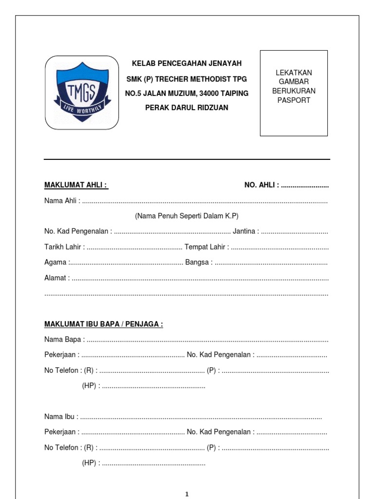 Contoh Borang Keahlian Pertubuhan