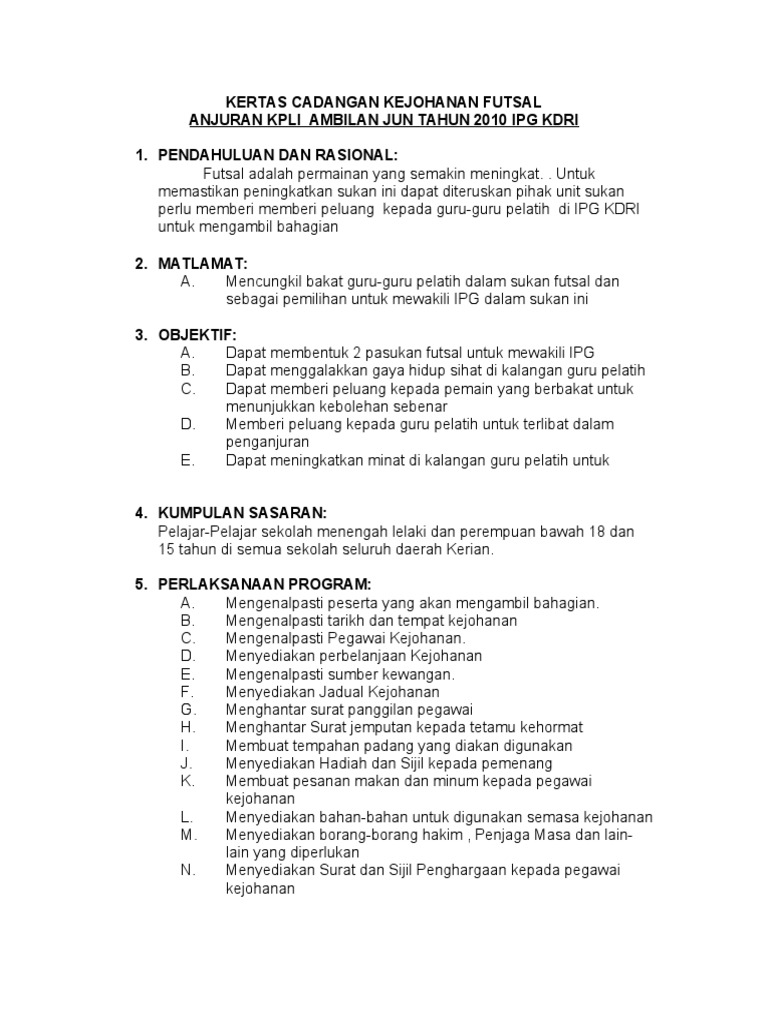 Doc Kertas Kerja Futsal Wan Mukhzim Academia Edu