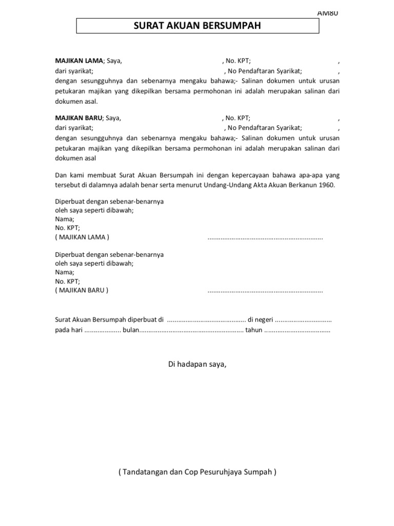 Contoh Surat Akuan Sumpah Tukar Hak Milik Rumah Download Kumpulan Gambar