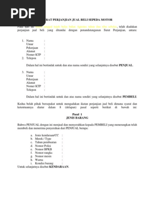 Surat Perjanjian Jual Beli Motor