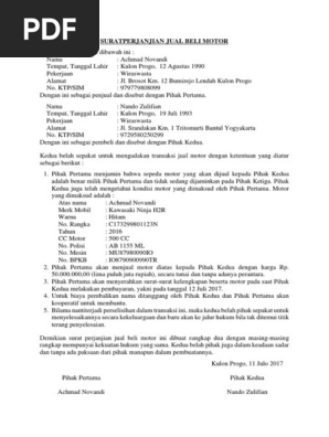 Doc Surat Perjanjian Jual Beli Sepeda Motor Syafei Elektro Academia Edu