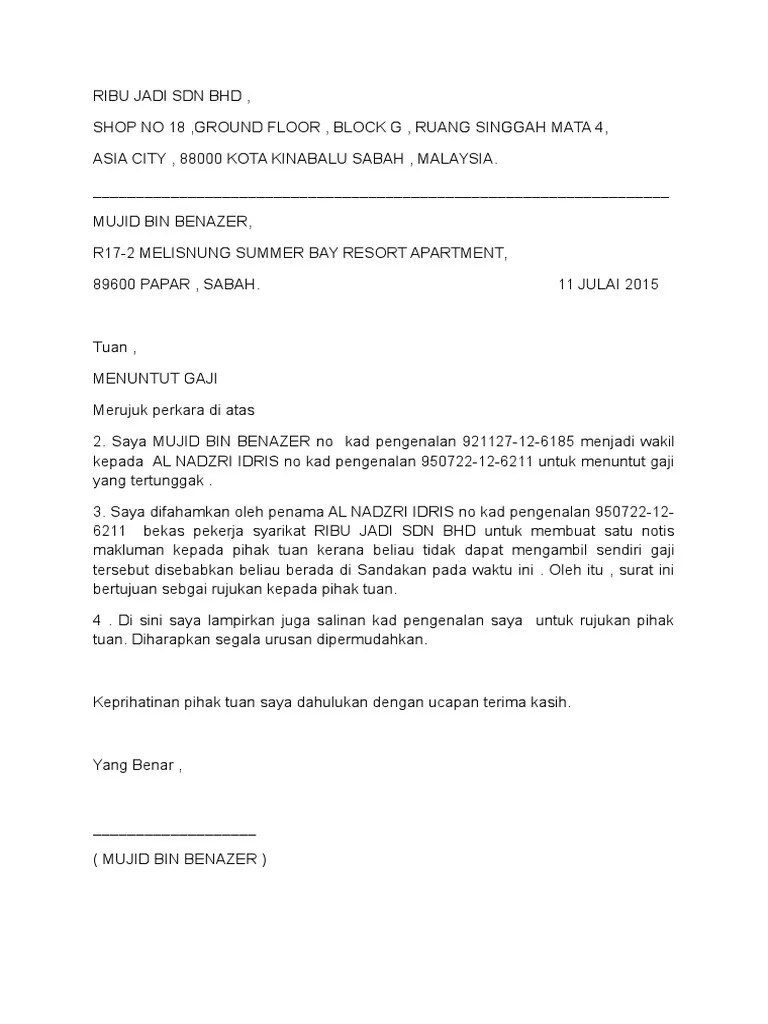Menuntut Contoh Surat Permohonan Tuntutan Bayaran Balik