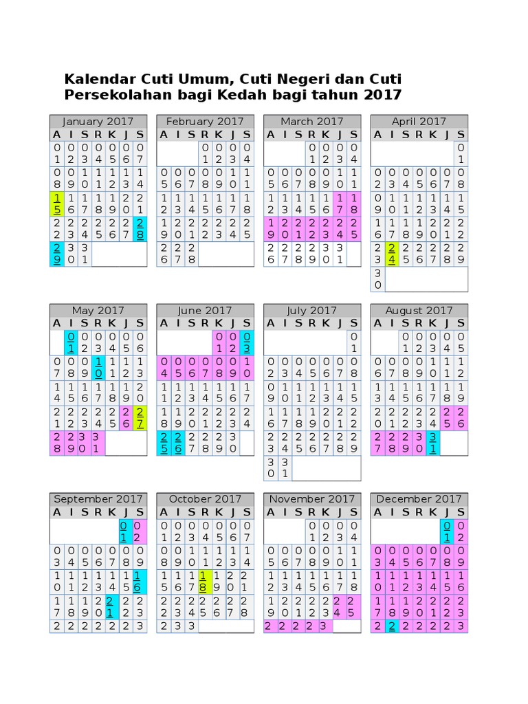 Kalendar Cuti Umum Cuti Negeri Dan Cuti Persekolahan Bagi Kedah Bagi Tahun 2017