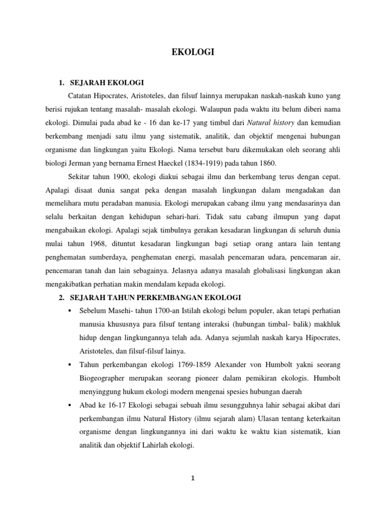 Definisi Ekologi Menurut Kamus Dewan