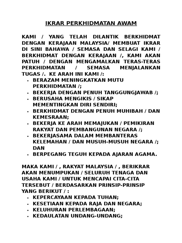 Ikrar Integriti Dan Ikrar Perkhidmatan Awam Pada Perhimpunan Rasmi Sekolah Bacaan Lkrar Integriti Dan Lkrar Perkhidmatan Awam Yang Melibatkan Semua Guru Di Pdf Document