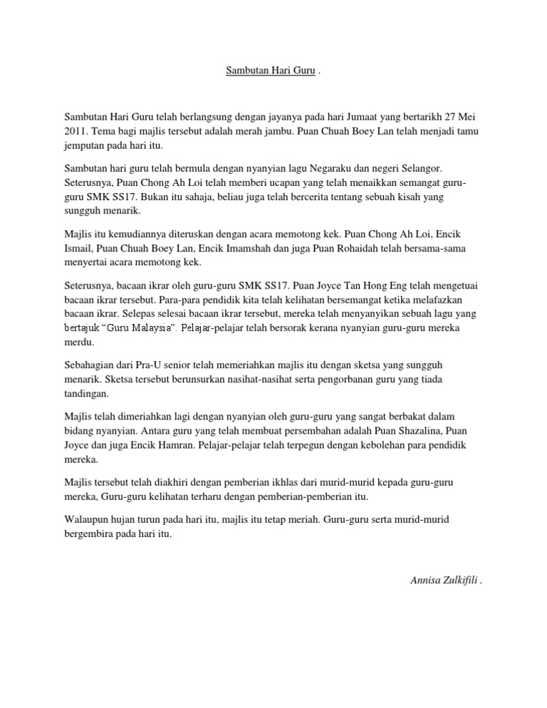 Contoh Karangan Laporan Sambutan Hari Guru Spm Jawat Koso