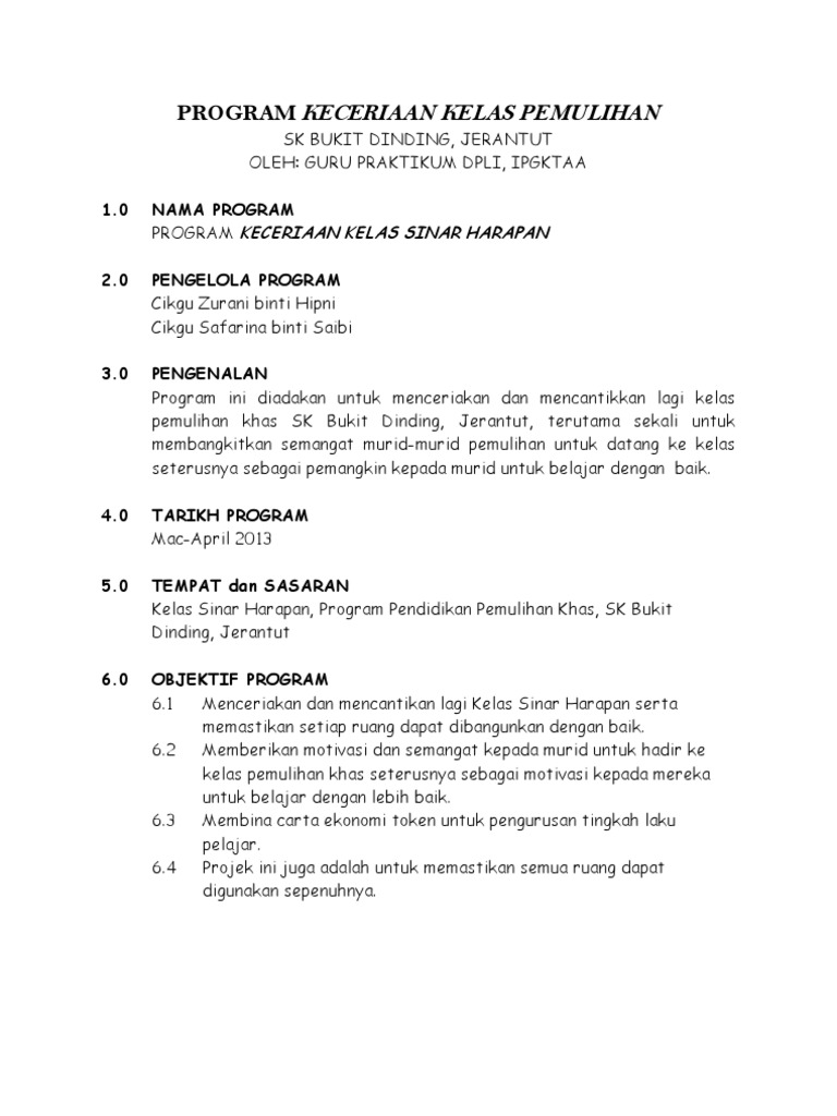 Kertas Kerja Program Keceriaan Kelas Permata Harapan 2012 True Pdf Document