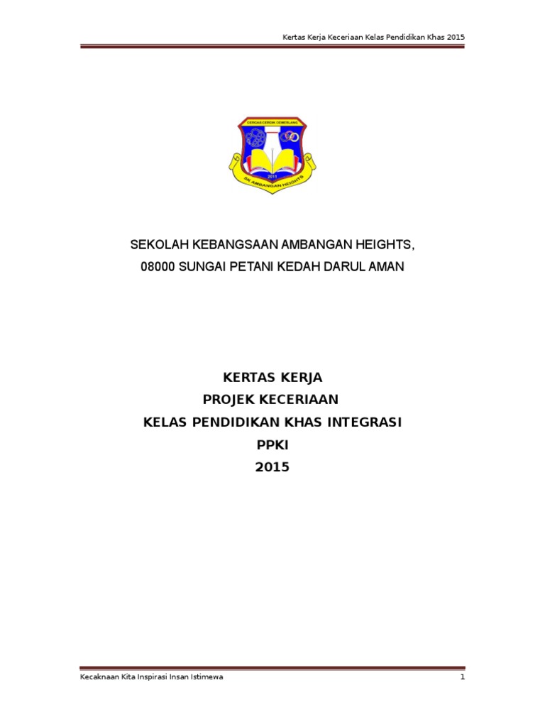 Kertas Kerja Keceriaan Kelas Pendidikan Khas