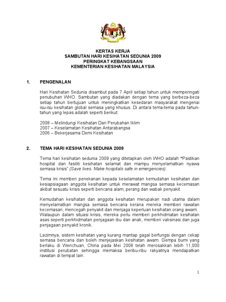 Kertas Kerja Sambutan Hari Kesihatan Sedunia