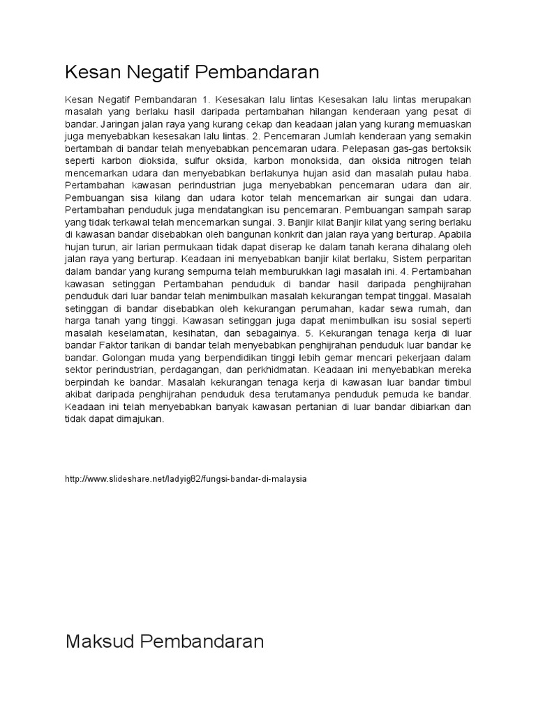 Kesan Postif Dan Negatif Pembandaran
