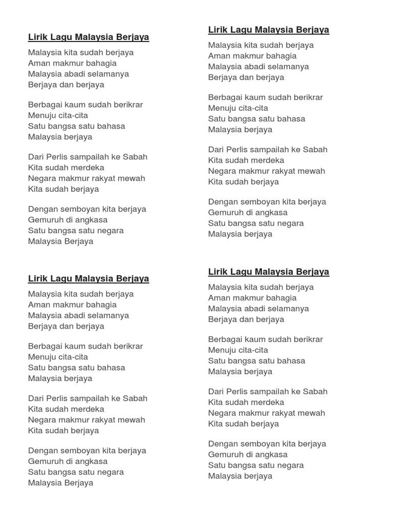 Lirik Lagu Malaysia Berjaya Docx
