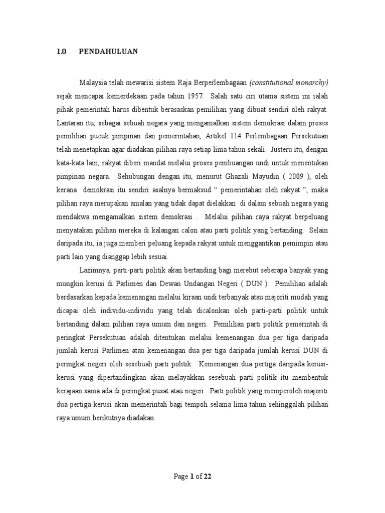Pdf Sistem Pilihan Raya First Past The Post Di Malaysia Perlukah Ditukar