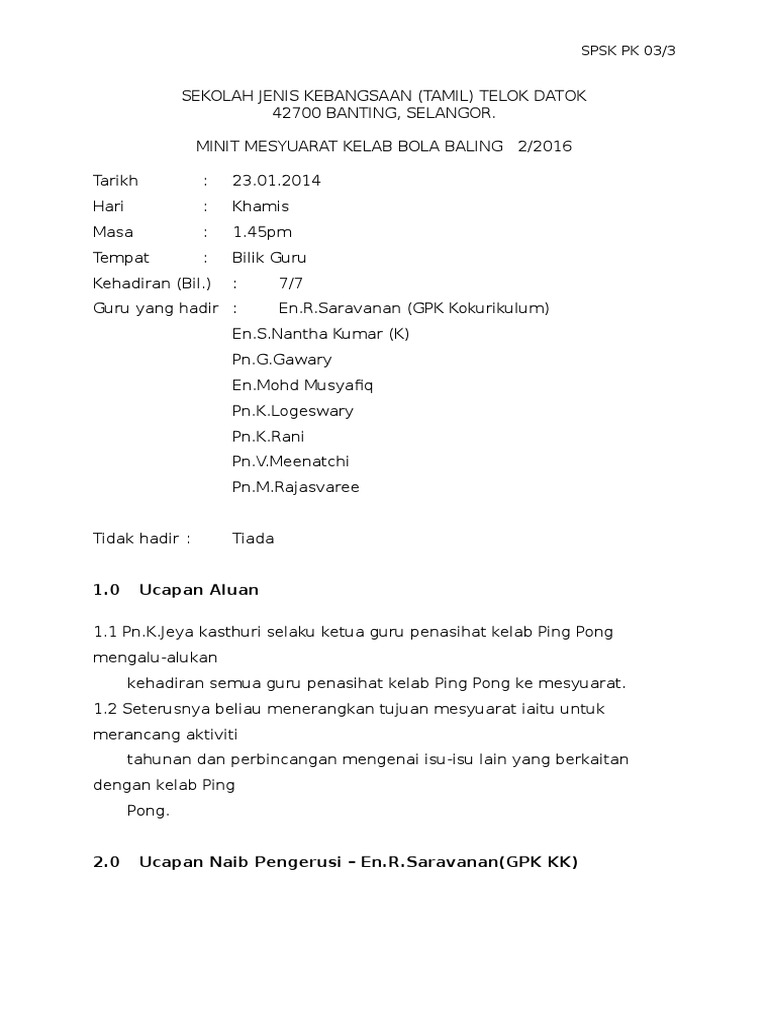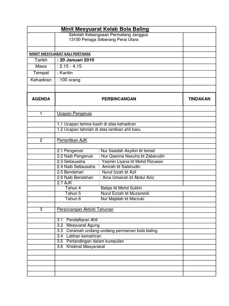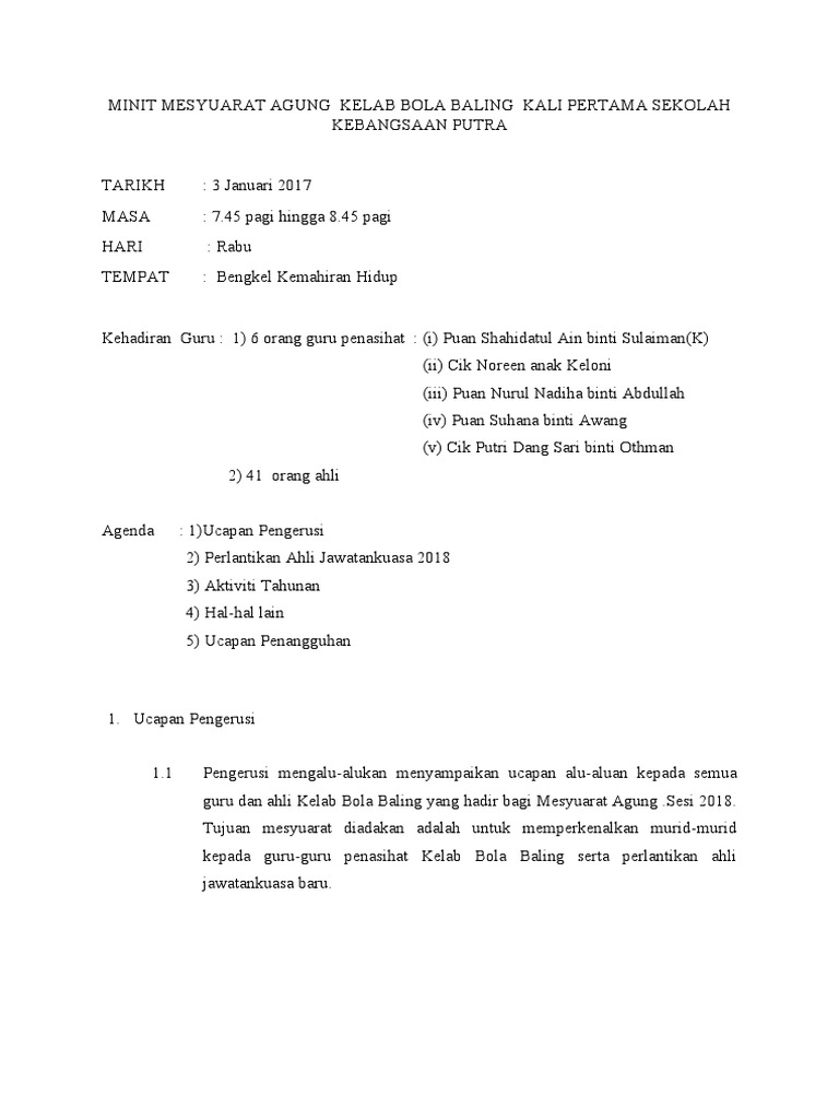 Dokumen Tips Minit Mesyuarat Kelab Bola Baling Pages 1 5 Text Version Anyflip