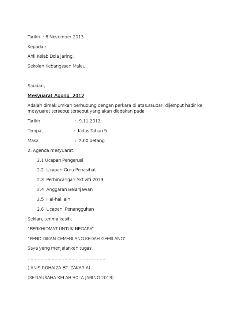 Format Surat Rasmi 2016