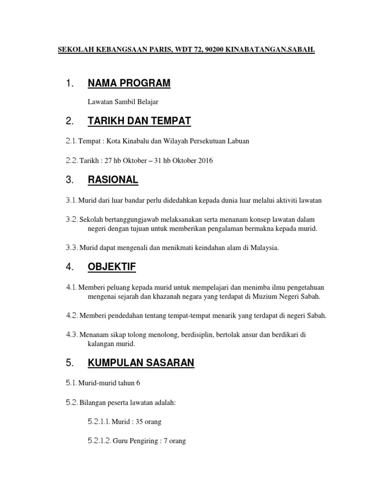 Nama Program Sekolah Kebangsaan Paris Wdt 72 90200 Kinabatangan Sabah