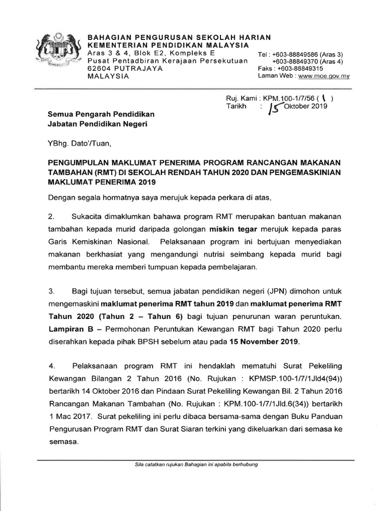 Surat Arahan Pelaksanaan Rmt 2020 Pdf