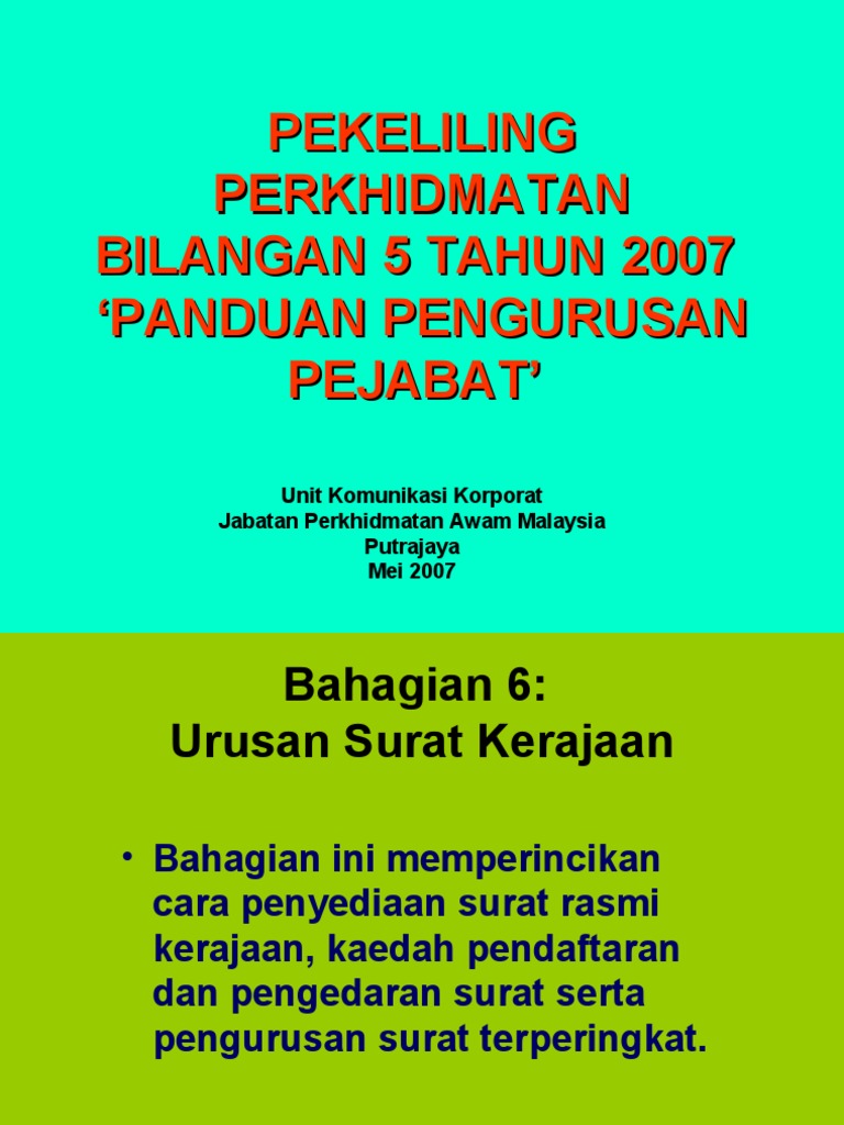 Pekeliling Perkhidmatan Bil 5 2007 Pdf