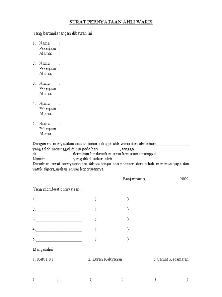 Download Contoh Surat Ahli Waris Yang Benar