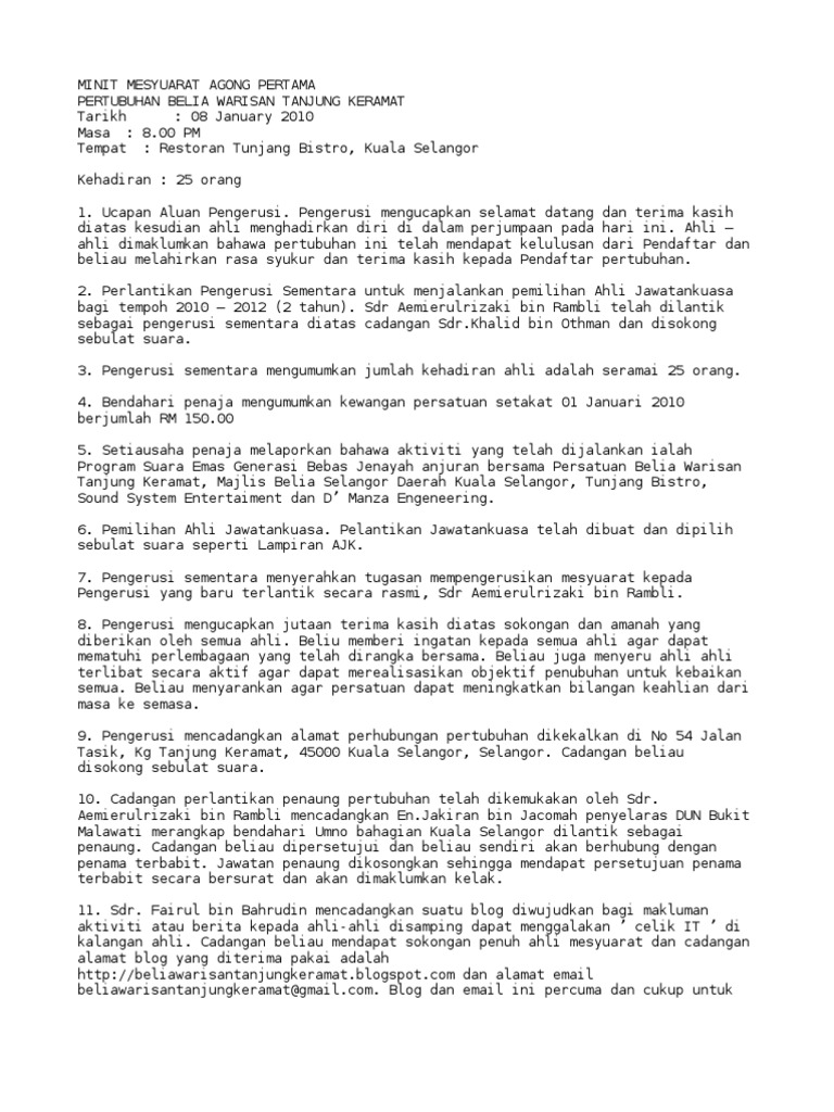 Liaguerhum Contoh Minit Mesyuarat Persatuan Untuk Buka Akaun Bank