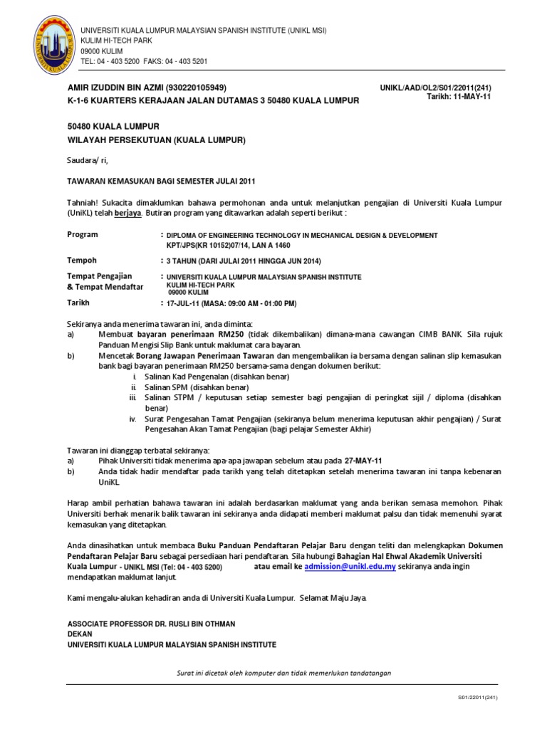 Power your future at unikl bmi. Untuk semakan syarat kelayakan di semua universiti sila klik senarai berikut. Sijil tahfiz malaysia. Mr mohd rusdan yusuf marketing department unikl mestech a1 1 jalan tks 1 taman kajang sentral 43000 kajang tel.