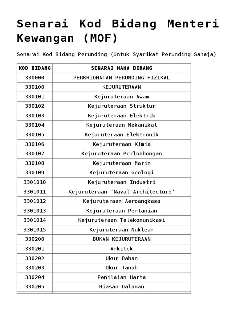 Senarai Kod Bidang Pendaftaran Bekalan Dan Perkhidmatan Pdf Free Download