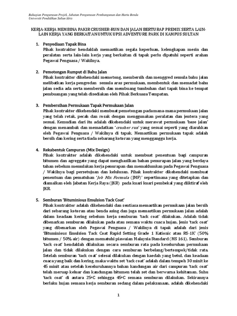 Spesifikasi Kerja Menurap Jalan