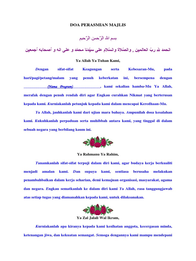Teks Doa Majlis Perasmian Program