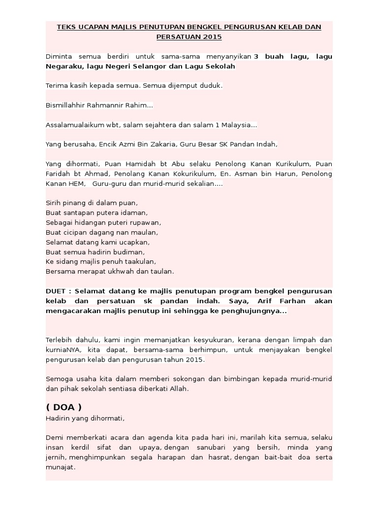 Teks Ucapan Majlis Penutup