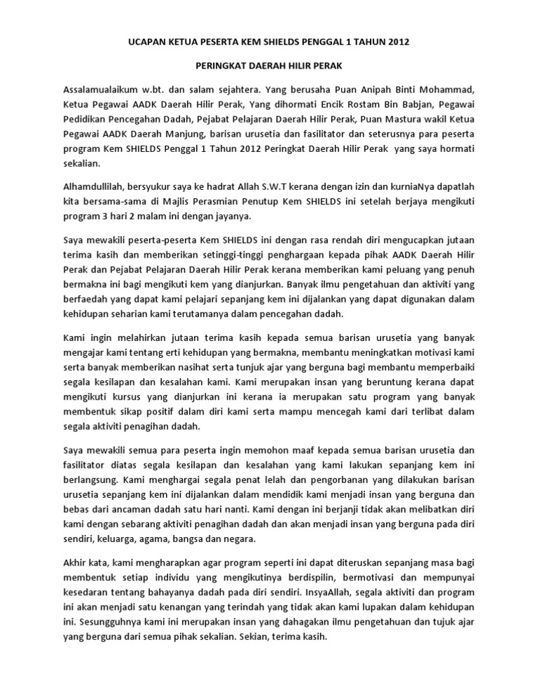 Teks Ucapan Penghulu Peserta Kem Shields 2012